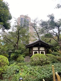 Das Hotel liegt verkehrsgünstig zur Shinkansen Station Shinagawa und hat einen schönen Park.