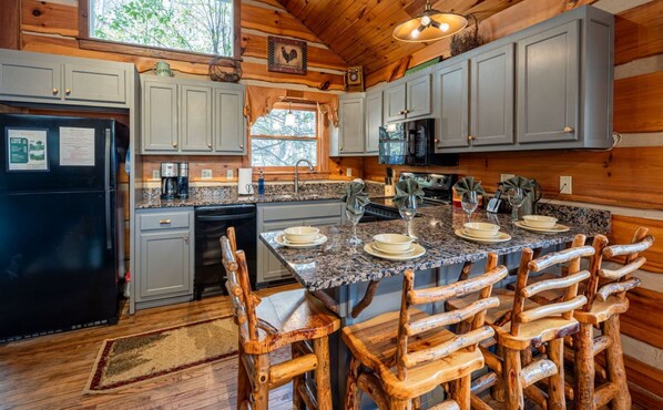 The tranquil and inviting two-bedroom, two and a half-bath cabin easily surpasses most smoky mountain cabin rentals with its 16-foot cathedral ceilings.