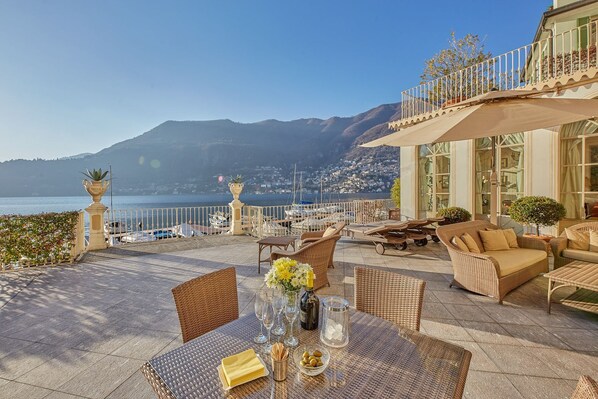 Enjoy direct lake-access via steps from the terrace. Please take care and supervise children. You can moor your own boat in front of the villa or in the private Darsena. Please enquire for more details and ensure that the boat's dimensions are compatible with the dock.