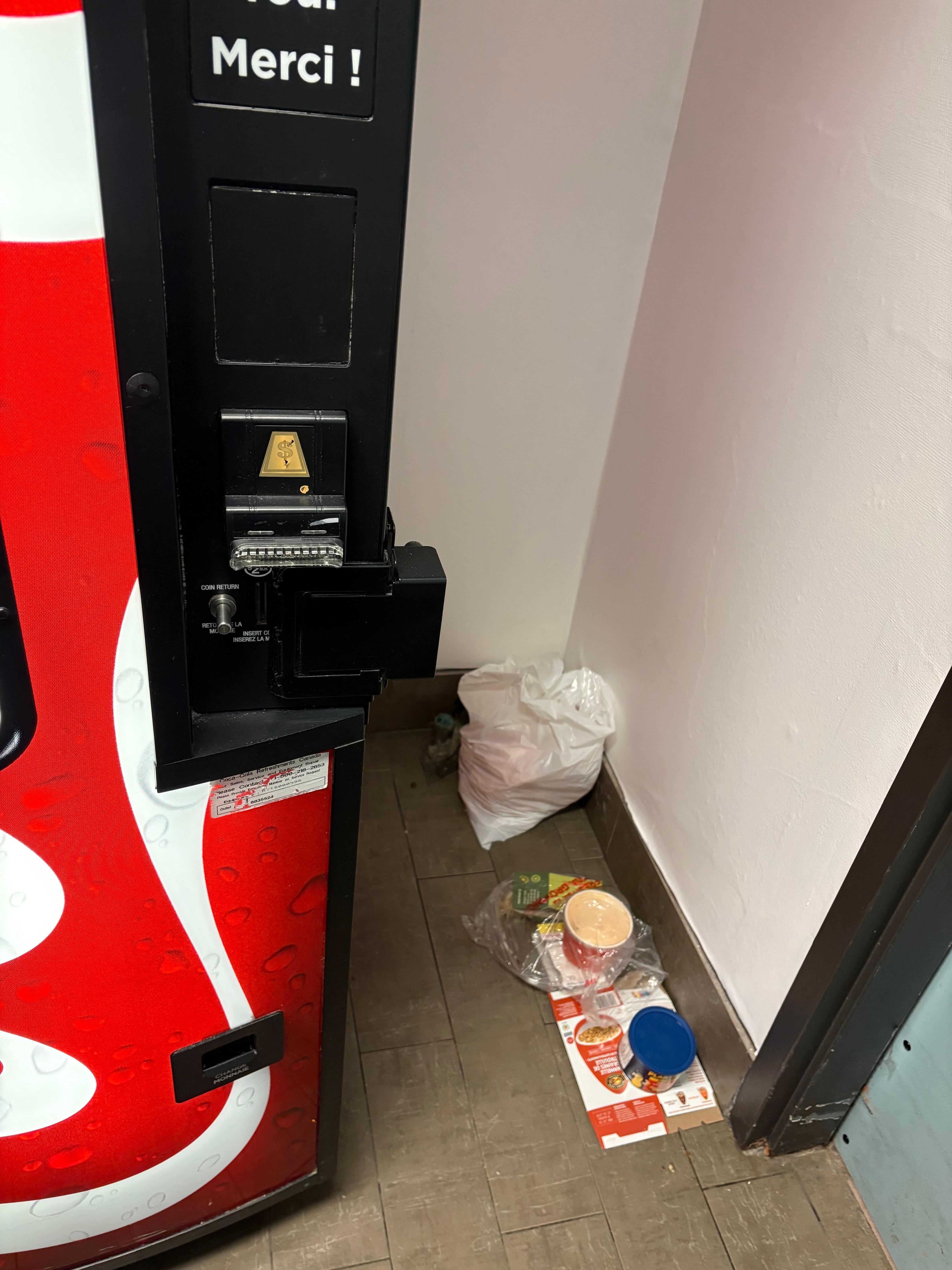 There was a pile of food waste and containers next to the water filling station / vending machine on my floor so I went to the lobby to get water.