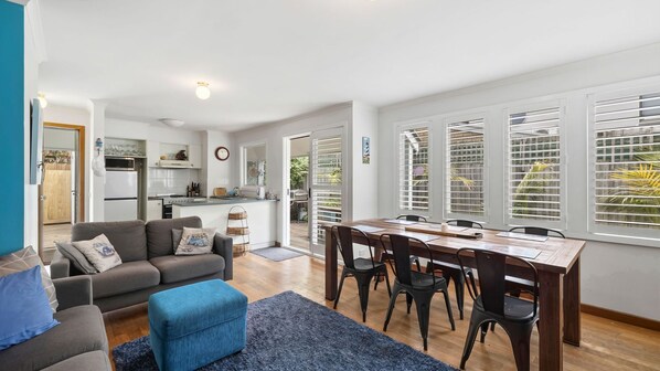 Front Beach and Cosy Corner are right across the road, perfect for a relaxing day by the sea. For a bit more adventure, take a stroll past Point Danger to the renowned Torquay Back Beach.