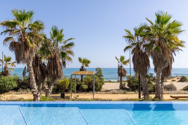 You will enjoy its large terraces with sea and pool views, outdoor lounge, and dining area.