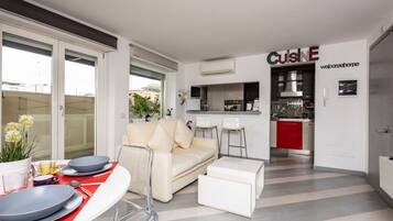 „Bel appartement, mais la communication avec le propriétaire n'a pas été simple. Pas de réponses avant le jour J, ainsi je ne savais pas que la piscine n'était plus accessible. Et j'ai été averti de la procédure pour accéder au logement seulement après l'atterissage. Heureusement que j'avais une connection internet, car il fallait s'enregistrer en ligne pour pouvoir accéder à l'appartement. Et l'ouverture des portes du batiment ne se fait qu'avec le gsm ( pas de chance il y avait une panne de ...