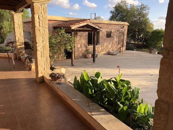 The property is ideal for large groups, bachelors, hence, weddings, family reunion parties, birthdays and any kind of celebration, for an additional reasonable extra charge. Maximum sleeping capacity : 8 Maximum capacity for parties: 30 Relax with family and friends at Zivla’s Stone House. Ideal for large party groups, weddings, aniversaries! Colourful well-kept garden. Very near Paphos Harbour with the Fishing Boats and Cruise Ships. Local shops, restaurants, bars, supermarkets and other amenities only 5 minutes drive from the House. The Tombs of the Kings, The Roman Mosaics, the historical ruins and the medieval castle only 15 minutes drive from the House! Near to all amenities yet, private and peaceful. Perfect for outdoor events! Ideal for large party groups, weddings, aniversaries!