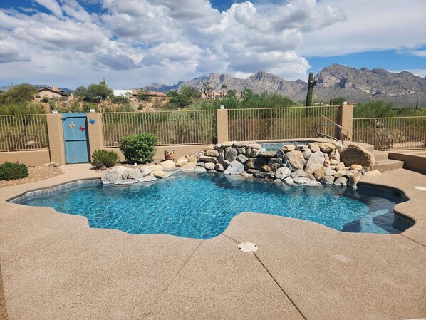 Everything about this property was outstanding. We have stayed in a number of places in Tucson and this was the best! The layout and flow of the house, leading through to the patio and pool area, the convenient interleading garage.The house was very comfortable and well equipped with everything you need. All you have to bring are your clothes and food. We did not lack for anything. Even coffee and tea were provided.The washing machine and dryer were easy to use and efficient. Laundry supplies were on hand too.The oven and microwave all worked. The fridge was roomy and they even provided bottled water for us.The pool was clean and very nicely laid out with views of the mountains. They also provided plenty of swimming towels. The patio has very comfortable furniture for relaxing, napping, eating a meal or lazing in the sun.The house has heating and cooling as well as ceiling fans. Plenty of hot water in the showers. There is a large garage with automatic door opener, so you can keep your vehicle cool during the day and secure at night. Plenty of tv entertainment if that is your thing. The neighbourhood is quiet and safe but everything you need is a short drive away. The views of the Catalina Mountains was magnificent!Don't bother to look elsewhere just book this place!