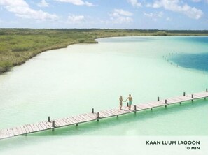Dank der ausgezeichneten Lage (La Veleta) ist dieses Ferienhaus nur 2 km entfernt von: Holistika Kunstspaziergang und Krankenhaus von Tulum. Ebenfalls nur bis zu 5 km entfernt: Dos Aguas Park und Cenote Escondido.