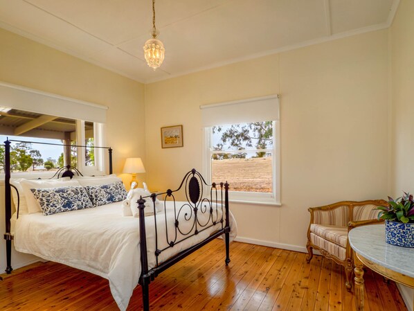 Die Gäste können sich entspannen und das Landleben erleben, indem sie sich auf der Veranda oder am Feuer mit dem perfekten Glas Shiraz und einem guten Buch entspannen.