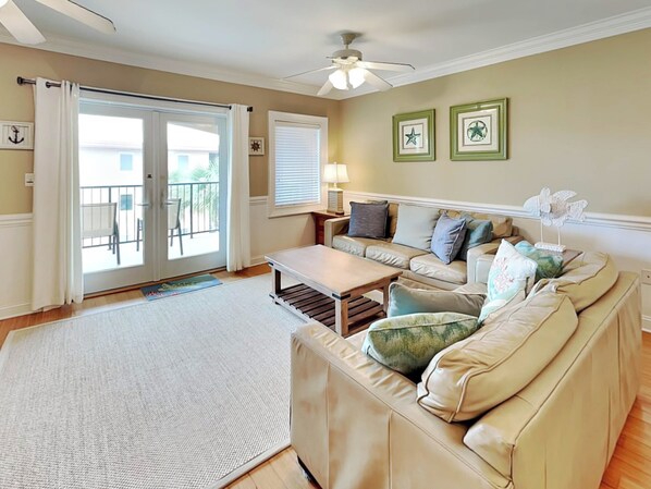 Inside Brass rail 311 you’ll discover comfortable seating to sink into for movie nights around the large Smart TV. The full kitchen boasts stainless-steel appliances & abundant counterspace for whipping up your favorite recipes or preparing your fresh-caught fish dinner. A convenient pass-through bar counter offers barstool seating. Gather at the dining table for a shared meal as you relive the day's adventures.