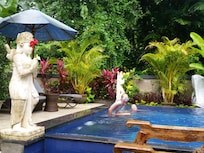 Villa Bakti Ubud in Ubud liegt im Geschäftsviertel und in Strandnähe. Goa Gajah und Tegallalang-Reisterrassen gehören zu den wichtigen Sehenswürdigkeiten. Wer auch die Natur der Region bewundern möchte, sollte Folgendes besuchen: Campuhan Ridge Walk und Wasserfall Tegenungan. Lass dir diese Attraktion nicht entgehen: Bali Marine and Safari Park. Beim Tauchen und beim Schnorcheln kannst du die umliegende Wasserwelt erkunden oder aber du stürzt dich beim Radfahren und auf den Wander-/Radwegen ganz in der Nähe in ein Abenteuer mit festem Boden unter den Füßen.