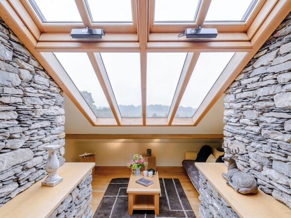 Living area: 60" Smart TV, Bluray Player, Woodburner