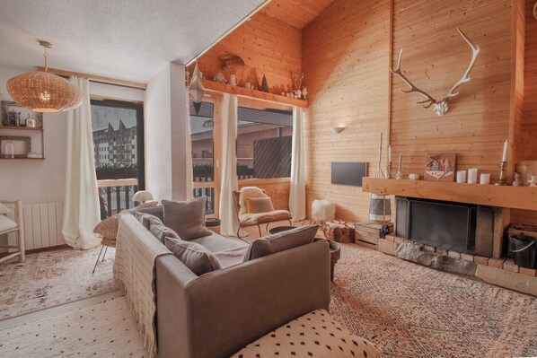 This 100 m² top-floor duplex, both spacious and cosy, is located in the heart of Val d’Isère and features: A large living room with sofa, balcony and fully equipped open-plan kitchen 3 bedrooms (2 on the lower level and 1 upstairs): 2 double bedrooms and 1 bedroom with 1 double bed and 1 single bed 2 bathrooms (one on each level) and 2 toilets (one on each level) Ski room with boot warmers Plenty of storage A dedicated desk area on the upper level