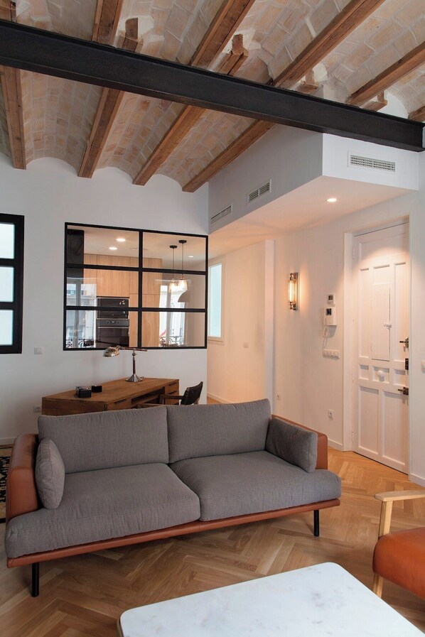 Im Wohnbereich haben Sie drei verschiedene Räume und sind sorgfältig eingerichtet und beleuchtet, Arbeitsbereich mit einem schönen Schreibtisch, Sitzbereich mit Sofa für drei Personen und zwei Einzelsitzen, großer TV, Internet usw. und Essbereich. Dieser Raum hat auch zwei Balkone, die die Maestro Gozalbo Street überblicken. Sie möchten nicht, dass Ihre Reise endet, und Sie werden ohne Zweifel bleiben wollen.