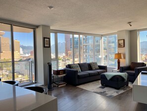 Dank der ausgezeichneten Lage (Downtown Vancouver) ist dieses Apartment zu Fuß gerade mal 5 Minuten entfernt von: Rogers Arena und Queen Elizabeth Theatre. Ebenfalls höchstens 15 Minuten entfernt: Vancouver Waterfront und BC Place Stadium. S-Bahn-Station Stadium-Chinatown ist in 2 Gehminuten erreichbar und S-Bahn-Station Granville ist 9 Minuten entfernt.