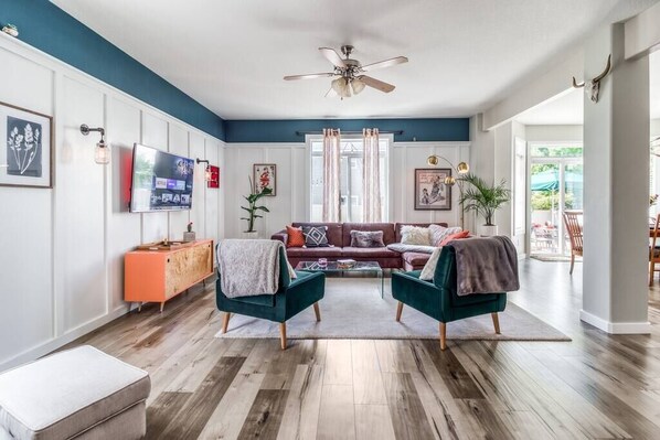 We had a mix of ages - grown adult couples, teenagers and a few small kids. Great touches throughout - flowers, some wine and fresh fruit. It was the BEST stocked house we have stayed in. Loved the staples that made cooking easy not to mention laundry supplies, shampoo & tons of blankets! The whole group really enjoyed the outdoor space along with the arcade/pool table space in the garage. A few of the teenagers even opted to crash on the couch instead of a bed. We had a good time playing both the board games and electronic when it got rainy as it often does in this area. The park across the street was great for the kids - we couldn't hear noise from it inside either which I was worried about but it wasn't an issue. The overall location was ideal, out of the Portland traffic but not too far when we wanted to run into town plus close to the river in Vancouver and a host of other sites. Highly recommend to anyone! Host was really responsive when we had a few things pop up on our visit.