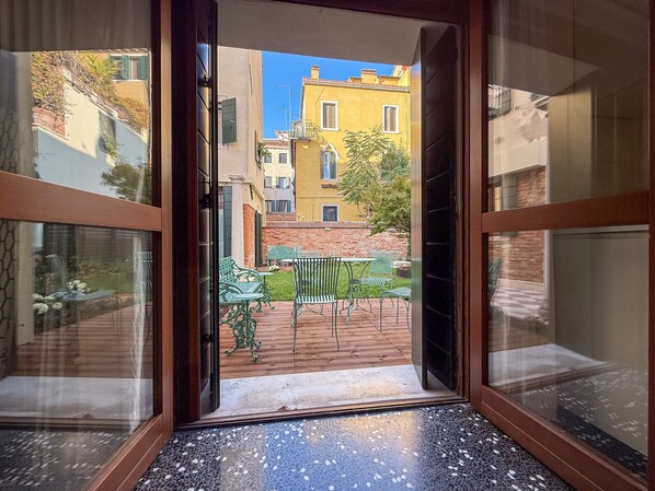 Der Standort ist fantastisch: nur 2 Gehminuten von der Basilika della Salute und der Guggenheim-Sammlung entfernt und 5 Gehminuten von der Accademia-Brücke. Er kann vom Flughafen Marco Polo mit einem privaten Wassertaxi in etwa 25 Minuten erreicht werden, das Sie direkt vor der Tür absetzt!