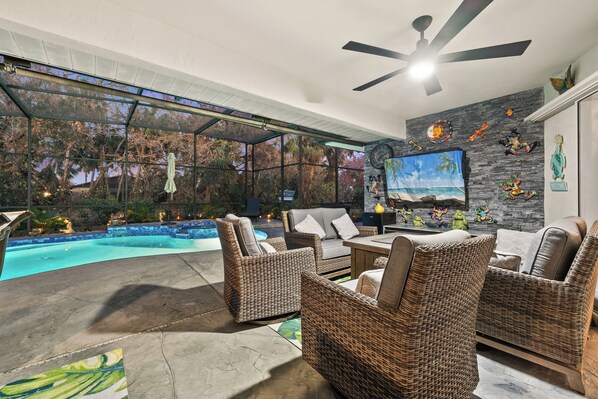 Awesome pool. Awesome lenai. Awesome house. Plenty of room. Lots of beach and pool accessories available for use. Kids loved the TVs in every room. Very clean. Kitchen well stocked. Didn't bother us, but showers are small. We had fantastic weather and a fantastic week