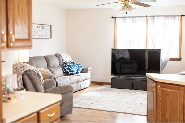 Driftwood Cottage is a cozy rental located in the Lake Erie shore town of Vermillion. This home sleeps ten people in four bedrooms. The master bedroom has a queen sized bed, there's another queen room, plus two more bedrooms with twin over full bunk-beds. There are two full bathrooms, the master bath boasts a shower and a jacuzzi and can be accessed from the living room. You'll find a well-stocked kitchen for your use and a cozy living room for connecting with friends and loved ones. Outdoors, you'll find a fenced yard and a nice area for children or pets to play. You'll find our home sparkling clean and thoughtfully furnished. Book today and you'll discover it's the perfect spot for your next work trip or for a vacation with your loved ones.