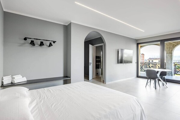 Alle Zimmer bei Brà Apartments & Lofts - Suite 1 | Verona Fiere verfügen über Extras wie eine Klimaanlage sowie Ausstattungsmerkmale wie kostenloses WLAN und Esstische.