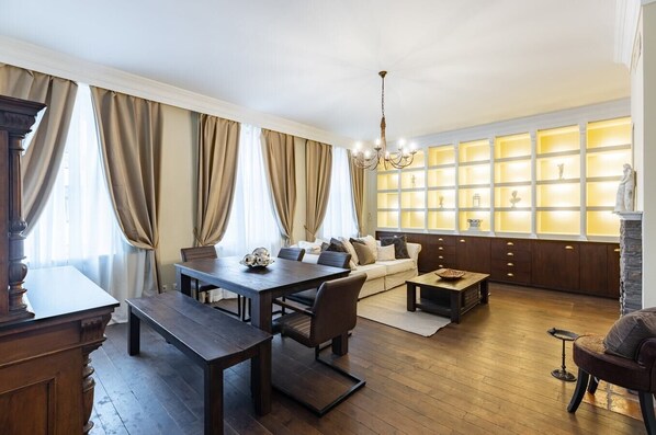 The spacious, stylish 2-bedroom flat is a perfect place to spend time with your family and to enjoy your trip. It is located in a calm district area with some cafés nearby! FREE Wi-Fi, hotel-quality bed linens and towels, fully equipped kitchen, TV, and fireplace! Perfect for couples, families, and small groups of up to 4 people. Pet-friendly!