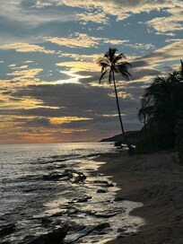 I don’t have any complaints about the room. The breakfast is also worth it, for $12 you can choose three items, and there’s something for everyone. As a vegetarian, I found good options too. The location is great, you can walk to everything, like Sun Bay Beach, Black Sand Beach, and there’s even a beach just across the street from the guesthouse. There are restaurants and a small market right around the corner as well.