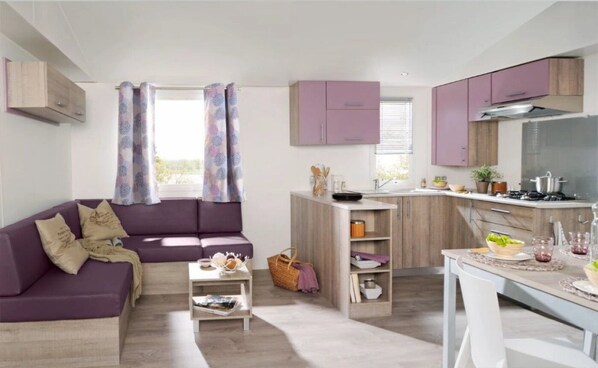 " Außergewöhnliche Unterkunft im Freien : Tauchen Sie ein in die beruhigende Atmosphäre der Natur in diesem luxuriösen Mobilheim von 34 m². Speziell für 4 Erwachsene und 2 Kinder unter 10 Jahren konzipiert, ist diese Unterkunft auf einem geräumigen Grundstück von 150 bis 200 m² eingebettet, das einen komfortablen Wohnraum bietet, um mit der Familie oder Freunden zu teilen. ` Modernster Komfort in natürlicher Umgebung : Organisieren Sie einen unvergesslichen Aufenthalt mit allen modernen Annehmlichkeiten, die Ihnen zur Verfügung stehen. Bleiben Sie dank TV und WLAN verbunden, während Sie die friedliche Natur genießen. Dieses luxuriöse Mobilheim verkörpert perfekt das High-End-Camping, das Privatsphäre und Komfort vereint. ` Strandnähe und Outdoor-Aktivitäten : Dies ist der ideale Ort für diejenigen, die den modernen Komfort mit der Ruhe der Natur verbinden möchten, alles nur wenige Schritte vom Strand entfernt. Genießen Sie die Nähe zum Meer für entspannende Momente, zum Schwimmen oder für Spaziergänge am Meer. Schließlich, wer hat gesagt, dass Luxus und Camping nicht gut zusammenpassen können? Hier sind sie wie zwei Erbsen in einer Wohnmobilhülse!" ` camping les chenes verts - Mobil Home Confort 4/6 Places Optionen & Zusatzleistungen : - Unterkunft Kaution: Obligatorisch : ab 400€ pro Aufenthalt (Pour toute location de Mobil home, la caution est de 400€. Elle comprend les frais de ménage (90€).Cette caution peut-être donnée par chèque ou par emprunte de carte bancaire. Elle sera restituée ou détruite dans les 8 jours après votre départ Caution camping: Nous acceptons les groupes de jeunes mais une caution de 180 € vous sera demandée et peut être encaissée en cas de bruits déraisonnables et répétés occasionnés sur le terrain (Une caution par emplacement). En cas d’expulsion avant la fin du séjour, celui-ci ne sera pas remboursé.) - Babybett: Optional : ab 2€ (2€/ nuit mais stock limité) - Parkplatz im Freien: Im Preis inklusive - Gemeinschaftspool: Im Preis inklusive - -Schwimmbad Öffnungszeiten : 01-01 bis 31-12 (La piscine couverte est ouvert du 6 avril au 15 Septembre La piscine extérieure est ouverte du 1er juillet au 31 aout) - Fernseher: Optional : ab 39€ pro Woche (Elle est inclus dans la gamme prestige, premium et luxe) - Wifi: Optional : ab 10€ pro Woche (Elle est inclus dans la gamme prestige, premium et luxe 3€/jour 10€ la semaine et 16€ les 14 jours) - Tiere zugelassen: Zahlender Dienst (verfügbare Tarife vor Ort) (5 euros) - Ankunftszeit: 15H00 - 19H00 - Abfahrtszeit: 10H00 - Endreinigung: Optional : ab 90€ pro Aufenthalt - Handtücher: Zahlender Dienst (verfügbare Tarife vor Ort) (8 euros (une grande serviette et une petite serviette)) - Bettwäsche: Zahlender Dienst (verfügbare Tarife vor Ort) (12 euros) ` Die Kunden dieser Einrichtung müssen die Unterkunft reinigen oder vor Ende ihres Aufenthalts eine zusätzliche Leistung in Anspruch nehmen. Bei Nichteinhaltung kann die Einrichtung eine zusätzliche Gebühr erheben. Sofern von der Einrichtung nicht anders angegeben, müssen die Kunden ihre eigenen Bettwäsche und Handtücher für ihren Aufenthalt mitbringen. Ein zusätzliches Set kann von der Einrichtung gegen Aufpreis und vorbehaltlich Verfügbarkeit bereitgestellt werden. Bitte kontaktieren Sie die Einrichtung für jede Anfrage. Diese Einrichtung ist ein Campingplatz mit touristischer Zielsetzung. Bitte kontaktieren Sie uns im Voraus, wenn Sie eine Reservierung im Rahmen einer Geschäftsreise vornehmen möchten.