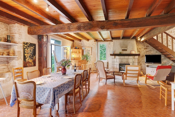 Sie werden die Ruhe dieses typisch steinernen Bauernhauses aus dem 18. Jahrhundert mit sichtbaren Holzbalken genießen, das von unseren Eltern und Großeltern liebevoll renoviert wurde. Vier Generationen unserer Familie haben hier gelebt. Heute laden wir Sie ein, die besondere Stille und Gelassenheit dieser Region kennenzulernen.