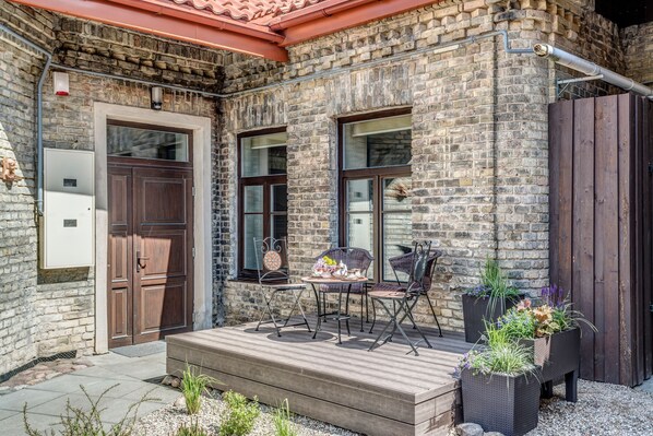 The apartment is situated in Užupis district. It‘s a historic and unique place. All places of interest are within walking distance, they are reachable in 15-20 minutes. Nearby you will also find cafes, boutiques, small shops, a supermarket and the Bernardine Garden, the greenest oasis in the heart of the city.