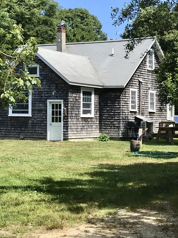 Schönes 1200 qm großes Haus in ruhiger Wohngegend in West Tisbury. Abseits der Massen, aber nur eine kurze Autofahrt von Vineyard Haven und Oak Bluffs entfernt, und bequemer Zugang zu Chilmark und Aquinnah. Bequem zu Lambert's Cove Beach (Gebühr von Park und Rec für Strandaufkleber), State Forest, West Tisbury Centre und Flughafen. Das State Road Restaurant, die MV Glassworks, Middletown Nursery, MM Stone Antiques und North Tisbury Farm & Market sind zu Fuß erreichbar. Zwei Schlafzimmer - eines im Obergeschoss, eines im Erdgeschoss - eines mit einem Queensize-Bett, das andere mit zwei Einzelbetten. Wohnzimmer mit Kathedrale Decke. Geschlossene Veranda. Besitzer vor Ort.