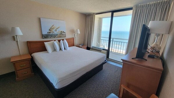 There is a Full kitchen that includes a Stove, Oven, Microwave, Dishwasher, full size Refrigerator, and Coffee Maker. The Living Room includes a pull-out Queen size sleeper sofa. There is an huge double wide Oceanfront balcony accessible from the Living Room.