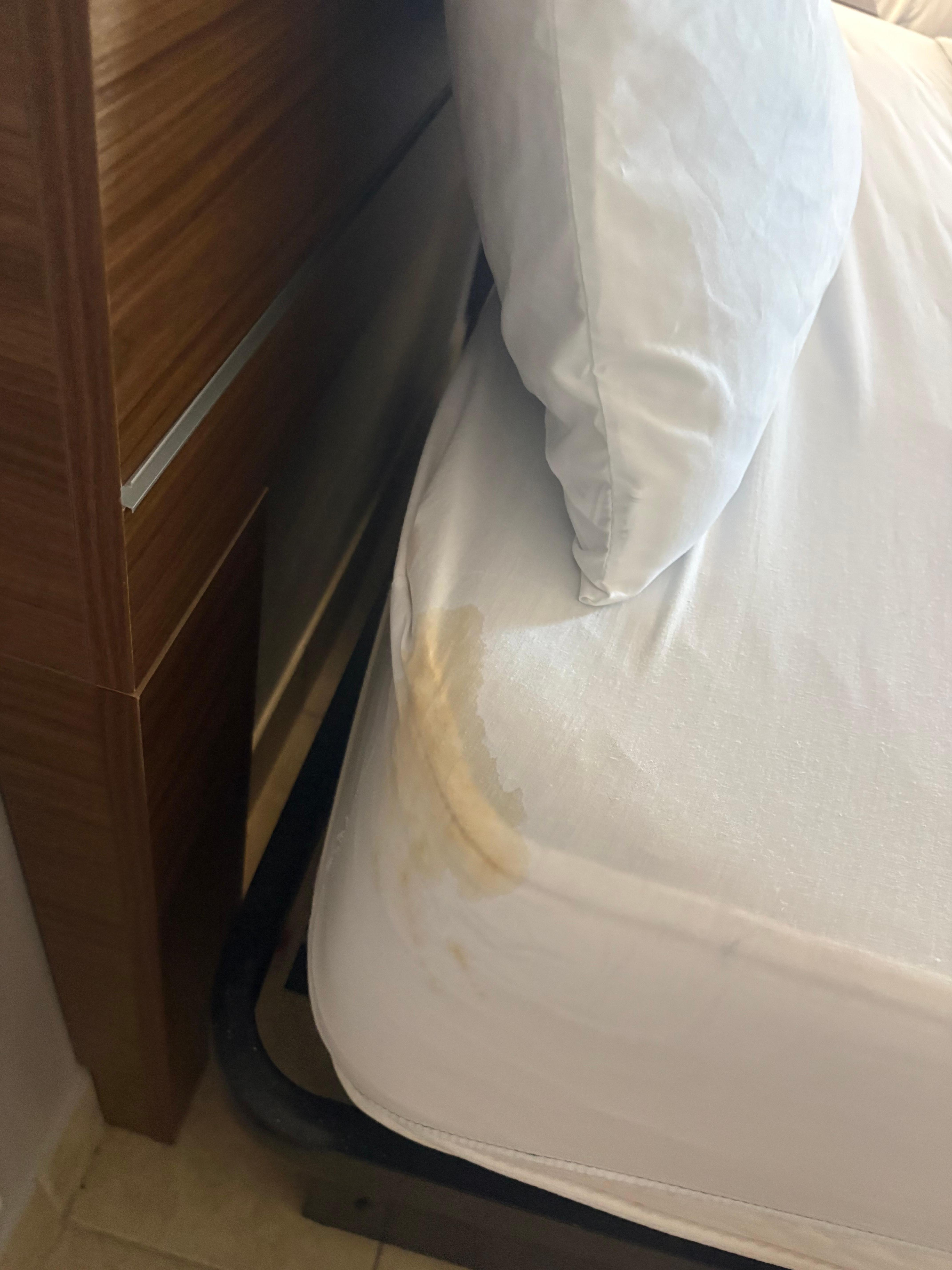 This hotel was absolutely disgusting. There was pee on the bed sheet upon checking in, and a strong cigarette smell in the room. Upon talking to the general manager, he told us to go to the housekeeper to get a room change. When approaching the housekeeper, he was smoking a cigarette while cleaning the room. He showed us another room that was just as disgusting. The sheets were stained, the room reeked of cigarette smoke even though it was a smoke free room, and there were bugs all over. We were scared to even sit down anywhere. Obviously checked out immediately however was told that we could not get a refund unless we go through Expedia.