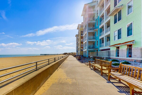 Located just steps from both the ocean and the bay, this bright and inviting condo, nestled in Virginia Beach's charming Sandbridge neighborhood, will be the highlight of your next Outer Banks vacation! Along with access to three sparkling pools, guests can enjoy miles of beautiful sand and surf. Plus, this property is conveniently located less than 20 miles from popular attractions like the Military Aviation Museum, Red Wing Park, the Virginia Aquarium & Marine Science Center, and the Veterans United Home Loans Amphitheater at Virginia Beach.