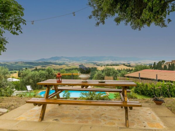 Grosses, komfortables Haus "Miranda", auf 2 Stockwerken, einseitig angebaut, umgeben von Bäumen und Feldern. Am Ortsrand, 150 m vom Zentrum von Villamagna, ruhige, sonnige Lage, 45 km vom Meer. Zur Alleinbenutzung: Naturgarten, Aufstellpool (7 x 4 m, saisonale Verfügbarkeit: 01.Mai. - 15.Okt.). Aussendusche, Pergola, Poolpflege durch den Besitzer/Gärtner. Parkplatz (für 2 Autos) auf dem Grundstück. Einkaufsgeschäft 150 m, Supermarkt 12 km, Restaurant 4 km, Bar 250 m, Bushaltestelle 200 m, Sandstrand "Marina di Cecina" 45 km, Thermalbad "Casciana Terme" 27 km. Reitstall 2 km. Nahe gelegene Sehenswürdigkeiten: Volterra 14 km, San Gimignano 25 km, Pisa 60 km. Jugendgruppen nur auf Anfrage. Bitte beachten: Besitzer wohnt in separatem Hausteil. Eigentümer hat einen Hund.