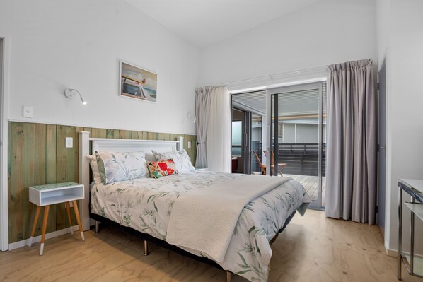 With high ceilings, sliding doors from two bedrooms, and an open-plan layout connecting the lounge and kitchen, slipping into holiday mode is effortless.