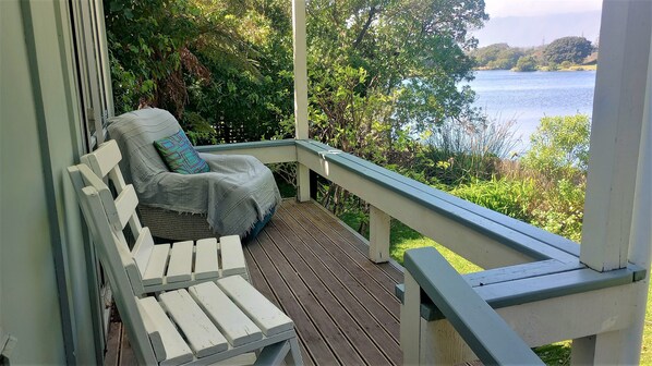 Lake behind, river to the side and a view of the sea! hard to beat that. We loved walking around the lagoon loop and up to the restaurants along the beach. Very cosy with the log fire, comfortable and welcoming. The shower needs more pressure, but overall a great stay. Thanks
