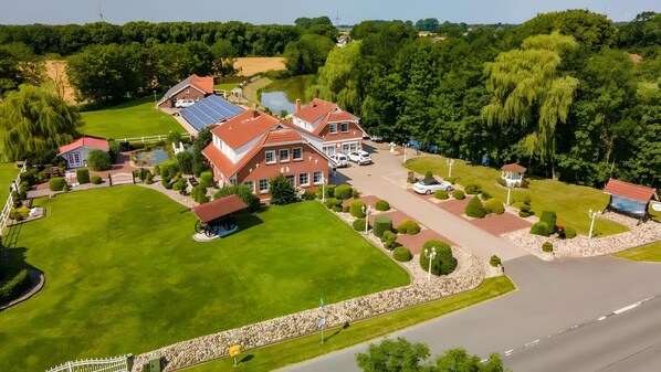 Unser Haus mit seinen Ferienapartments ist als Wohnanlage direkt am Hohenstief inmitten von Wiesen und Feldern errichtet. Es liegt zwischen den Küstenorten Horumersiel und Hooksiel und ist umgeben von unseren gepflegten Gartenanlagen. Jedes Apartment verfügt über einen kompletten Küchenbereich sowie eine gemütliche Sitzecke mit Satelliten-TV, Bad und bis zu 2 Schlafzimmern für 2 bis 4 Personen. Die Wohnungen sind gemütlich im Friesenstil eingerichtet. Die Gestellung von Bettwäsche ist im Preis enthalten und die der Handtücher nicht. Die Handtücher bitten wir mitzubringen oder können gegen eine geringe Gebühr gemietet werden. Ebenso können Sie eine kostenpflichtige Frühstücksbox mit Brötchenkorb bei uns zusätzlich bestellen. Der angegebene Preis gilt pro Person für ein Frühstück. Die Endreinigung wird separat berechnet. Sie können vor Ort einen kostenpflichtigen Wäscheservice nutzen. Jedes Zimmer ist mit Fliegennetzen ausgestattet. Unsere Angebote sind freibleibend. Sie bekommen kostenlos WLAN zur Verfügung gestellt. Der endgültige Vertragsabschluss kommt erst mit separater schriftlicher Buchungsbestätigung zu Stande. Die Haustiergebühr kann je nach Größe des Hundes geringer werden. Das Rauchen ist ausschließlich im Freien gestattet, und eine Belästigung anderer Personen ist zu vermeiden.