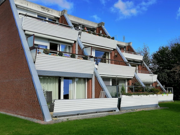 Die ebenerdige Ferienwohnung Brahms verfügt über ein Schlafzimmer mit Doppelbett sowie ein Schlafzimmer mit einem Etagenbetf. Ein Kinderreisebett kann im Elternschlafzimmer aufgestellt werden. Das Wohnzimmer mit Essplatz verfügt über eine offene vollausgestattete Küche sowie über einen direkten Zugang auf den Balkon. Das Tageslichtbadezimmer verfügt über eine Dusche und ein WC