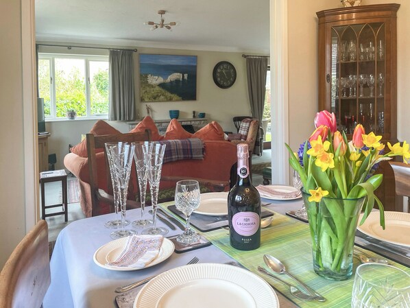 Separate Toilet.. Gas central heating, electricity, bed linen, towels and Wi-Fi included. Rear garden with garden furniture. Electric car charging point, at cost and prior arrangement with owner. Private parking for 3 cars. No smoking. Please note: There is a small unfenced pond in the garden.. Welcome to Millbrook. This detached bungalow is situated on a no-through road in the popular hamlet of Shitterton, on the edge of Bere Regis. It is the ideal base to explore the world famous Jurassic Coast and wide range of attractions Dorset has to offer. Stepping into Millbrook, you are welcomed in via a large hallway and separate toilet with space to hang up the coats and muddy boots after exploring the countryside. The property has two super king size bedrooms, one with an en-suite shower room. There is also a family shower room with a walk-in shower and underfloor heating. The kitchen is fully fitted with electric oven, gas hob, fridge, freezer, dishwasher, washing machine and microwave. The living room is at the rear of the property and is the perfect place to either relax in front of the Smart TV or sit with views out towards the rear garden enjoying a book. The dining room is set up for four people. Outside, the garden is mainly laid to lawn with patio area to catch the summer sun or enjoy a night under the uninterrupted night sky.