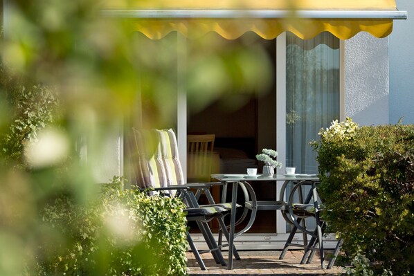 Öffnen Sie die Terrassentür und schon nach wenigen Schritten haben Sie über einen zur Anlage gehörenden Seezugang Zutritt zum Wasser.