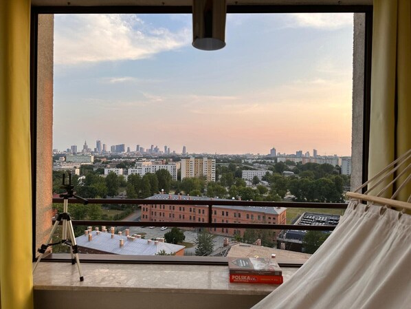 Dieses Apartment in Warschau bietet eine Küche und einen Balkon