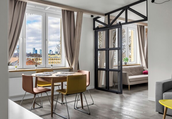 Royal Baths Superior Apartment is a spacious apartment in the heart of Warsaw, located next to the Royal Łazienki Park and Agrykola Park in a prestigious neighborhood surrounded by embassies. The apartment is situated in a unique location in the city center, immersed in the greenery of Warsaw’s most beautiful parks. It is directly adjacent to the Royal Łazienki Park and Agrykola Park, neighboring numerous embassies (including those of the United Kingdom, Spain, the Netherlands, Japan, and others). This exceptional setting combines a central location, perfectly connected with the rest of Warsaw, with a მშვიდ and intimate retreat among green spaces: parks, embassies, walking paths, cycling routes, historic streets, and charming restaurants.