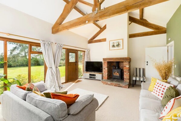 The fully equipped kitchen boasts modern appliances and all the culinary essentials you need to prepare delicious home-cooked meals in the countryside setting.