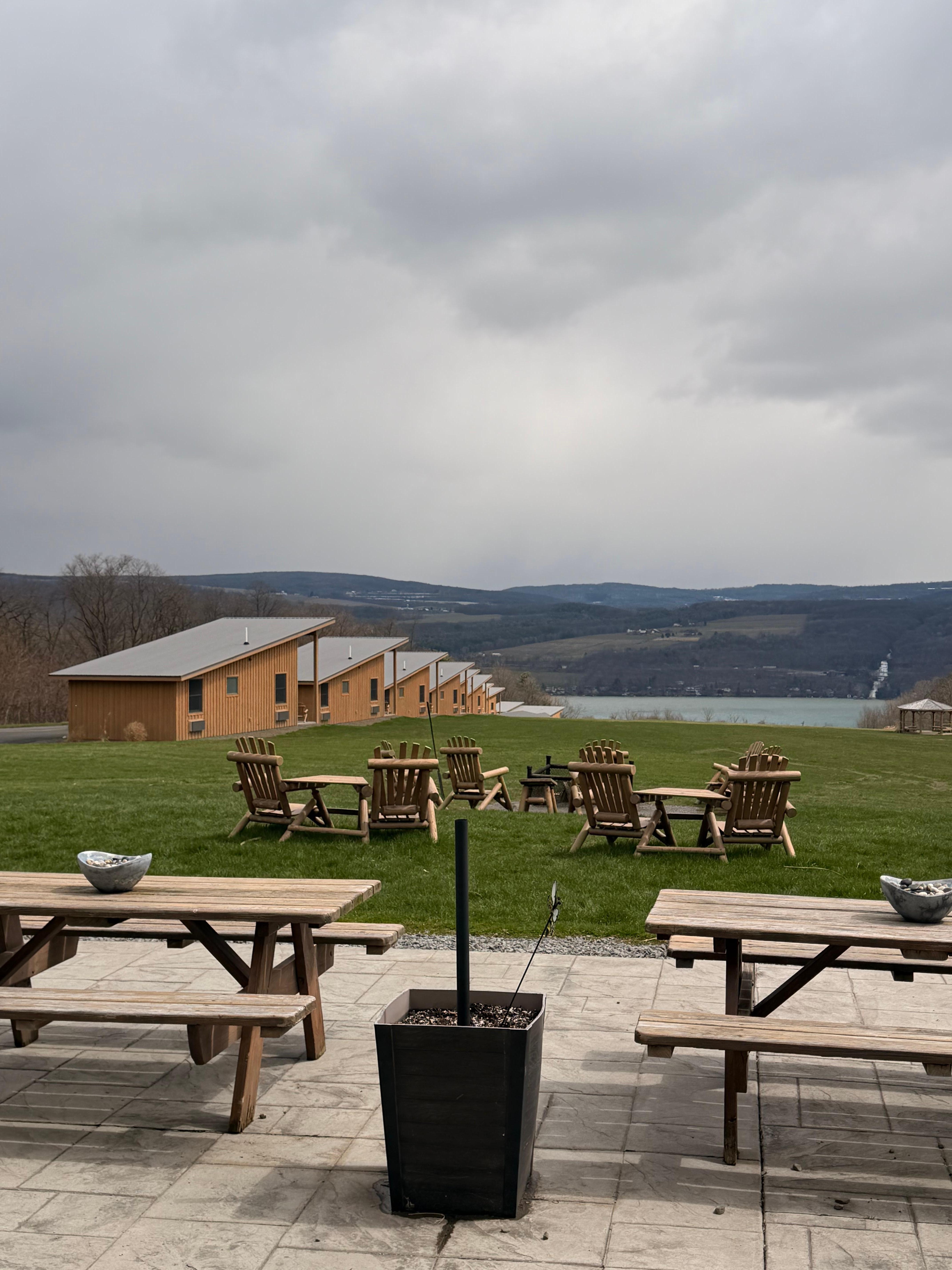 Perfect stop over from Niagara Falls to NYC. Rooms are nice, lodges looked even better. Lake view to Seneca Like included. Chatting with other guests on fire places was enjoyeable. In the morning american breakdast is served, bagels, toast, coffee. Don't miss to visit Watkins Glen, amazing and worth staying 1-2 hours there.
