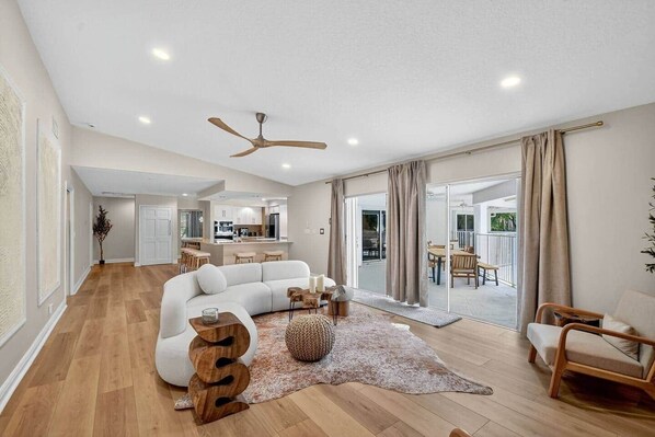 Palm Beach style meets comfort in this 5BR/3BA Wellington escape, 5 min to Polo Club, 20 min to beaches and Downtown West Palm, 15 min to PBI. Airy Scandinavian design, bright social spaces, and a lush private yard perfect for group stays. Private pool, large backyard, outdoor dining Lotus Lounge spa/glam room/Luxury showers Game room with pool table and shuffleboard Sleeps 14 - ideal for large families Self Check in, Fast Wi-Fi and workspaces See photos, bed layout, and all amenities. Welcome to your private Palm Beach luxury retreat — a 3,410 sq. ft., single-story estate on a sprawling one-acre gated lot in prestigious Wellington. Just minutes from world-class polo grounds, beaches, and the vibrant energy of Downtown West Palm, this million-dollar home offers the perfect blend of modern elegance, resort-style amenities, and total privacy. Step inside and you’re greeted with a warm Scandinavian–Japandi design, where organic textures meet sleek lines. Sunlight fills the open living spaces, highlighting bespoke furnishings and high-end finishes throughout. Every detail — from the rain showers in each bathroom to the chef’s kitchen outfitted with brand-new smart appliances — is designed to exceed expectations for the most discerning guests. Unwind in the spacious living room on designer seating while streaming your favorite shows on the massive 85" smart TV. Host memorable dinners at the 10-seat dining table, or enjoy casual gatherings at the 8-seat kitchen island. The fully stocked gourmet kitchen features premium appliances, including a Ninja Luxe Cafe espresso machine, dual ovens with built-in air fryers, and every essential for elevated cooking. Retreat to one of five beautifully styled bedrooms, each with blackout curtains, a 65" smart TV, and plush goose down bedding. The bathrooms are a true highlight, with double vanities, Delta luxury fixtures, and rainfall showers that create a spa-like experience in the privacy of your own suite. For indulgence and pampering, step into the Lotus Lounge — a serene spa/glam space equipped with professional massage tables and relaxing beds, perfect for self-care days and getting ready in style. Entertainment flows into the dedicated game room, complete with a professional pool table, shuffleboard, and a curated selection of board games for all ages. Outside, the expansive gated backyard is anchored by a sparkling L-shaped pool, surrounded by chic loungers and umbrellas for shade. An adjacent outdoor dining space and pass-through window from the kitchen make al fresco meals a breeze. And when it’s time to balance work and play, enjoy seamless connectivity with ultra-fast 500 Mbps Wi-Fi, multiple desk setups, and keyless entry for convenience. Highlights: 3,410 sq. ft. single-story estate on a one-acre gated lot Prime location: 5 min to Polo Club, 20 min to beaches & Downtown West Palm, 15 min to PBI Scandinavian–Japandi design with organic textures & upscale finishes Spacious living room with 85" smart TV Dining for 10 + kitchen island seating for 8 Fully stocked kitchen with Ninja Luxe Cafe espresso machine & dual ovens w/ air fryer feature 5 bedrooms: 1 King, 2 Queen, 4 Queen bunk beds — each with 65" smart TV, blackout curtains, closet, iron & ironing board Bathrooms with dual sinks, Delta luxury fixtures & rainfall showers Lotus Lounge spa/glam room with massage tables & facial beds Game room with pool table, shuffleboard & board games L-shaped private pool with loungers & umbrellas Outdoor dining area & kitchen pass-through window 500 Mbps Wi-Fi, smart thermostats, keyless entry Laundry with detergent provided Quiet hours: 10 p.m. – 7 a.m. | No events or parties Guests will have exclusive access to the entire home, pool, and one-acre gated property for the duration of their stay. From the moment you arrive, the keyless entry system allows for a smooth self check-in, ensuring your vacation begins effortlessly. Included with your stay: Entire 3,410 sq. ft. single-story home Private L-shaped pool with loungers & umbrellas Expansive gated backyard for complete privacy Full access to the Lotus Lounge spa/glam room Fully equipped game room with pool table, shuffleboard & board games Spacious living room with 85" smart TV Gourmet kitchen with all cookware, dinnerware & premium appliances Dining table for 10 & kitchen island seating for 8 5 bedrooms, each with 65" smart TV, blackout curtains, closet, iron & ironing board All bathrooms with dual sinks, Delta luxury fixtures & rainfall showers Ultra-fast 500 Mbps Wi-Fi & multiple desk setups for remote work In-home laundry with detergent provided Large driveway parking for up to 8 vehicles Smart thermostats for climate control Outdoor dining area with pass-through kitchen window We respect your privacy while ensuring you have the support you need for a seamless stay. The home is equipped with a keyless entry system, allowing for self check-in anytime after 4:00 p.m. and self check-out by 11:00 a.m. During your stay, you’ll have the entire property to yourselves. I am available via Airbnb messaging, phone, or text for any questions, recommendations, or assistance you may need. While I will not be on-site unless requested or required, I can respond quickly to ensure any issue is addressed promptly. You can expect: Hassle-free self check-in & check-out Fast responses via Airbnb, call, or text Complete privacy unless assistance is requested ★ ADDITIONAL ACCOMMODATION ★ Traveling with a larger group or your preferred dates aren’t available? We manage other high-end properties in the area, designed with the same attention to detail and luxury as this Wellington retreat. Browse our host profile to explore the complete list of stunning homes. ★ CLEANING & SANITIZATION ★ Your health, safety, and comfort are our top priorities. Our professional cleaning team follows a meticulous, multi-step process after each check-out, including sanitizing all high-touch surfaces, laundering all 