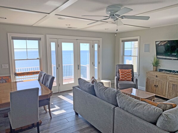Geben Sie die Hauptetage, die eine vollständige Treppe ist, und Sie werden ein Vollbad, Garderobe und Waschraum-Bereich finden, bevor die gesamte Etage zu einem sonnigen, schönen Wohnraum öffnet. Dieser Wohnbereich verfügt über eine schöne eigene Küche mit Granit, Edelstahl Geräte, die über einen großen Kühlschrank, Mikrowelle, Gasherd mit Wasserhahn, Dunstabzugshaube, Geschirrspüler und überdimensionalen Hof Waschbecken gehören. Sie werden alles, was Sie von den Keurig Maschine, Töpfe müssen finden und Pfannen, Geschirr, Besteck und vieles mehr. Wenn Sie gerne kochen, sogar im Urlaub, das ist eine Küche ist, werden Sie lieben. Ganz zu schweigen von den Ansichten, die Sie genießen können, während das Kochen. Der Esstisch mit Sitzbänken und Stühlen gibt Ihnen Raum zu speisen, wenn das Wetter kühler, weil in dem warmen Wetter Sie jede Mahlzeit auf der großen Terrasse mit Blick auf das Wasser zu essen wollen. Sie können Grill auf der Terrasse auch mit dem praktischen Gasgrill. Die Deck und Treppenflächen sind ein Verbund nicht splitter Material, das wie Holz aussieht. Barfuss willkommen! Zurück im Wohnzimmer mit gemütlicher Couch, Wand montiert Flachbild-t. v., Xfinity Kabel-und High-Speed-Internet wird erfüllen alle technologischen Anforderungen. Doch mit Blick wie diese, können Sie nie für die Fernbedienung zu erreichen.