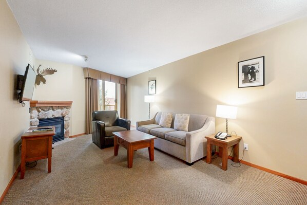 Fifth-floor condo with fireplace, heated pool, hot tubs & saunas - walk to lifts