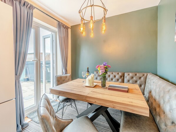 Bedroom 3: Zip And Link 2 x Single (3ft) Beds, Smart TV, Amazon Echo. Gas central heating, electricity, bed linen, towels and Wi-Fi included. Travel cot, highchair and stairgates. Welcome pack. . Enclosed rear garden with gas BBQ and garden furniture. Bike store. Electric car charging point. Private parking for 3 cars. No smoking.. On a peaceful development, with off-street parking outside, this is in a wonderful location for exploring Whitby and the beautiful North York Moors, with a desirable enclosed garden so you can enjoy al fresco dining in the sunshine.