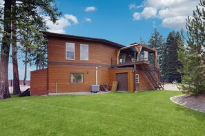 Two-level lakefront home with hot tub access, AC, W/D, & lovely patio