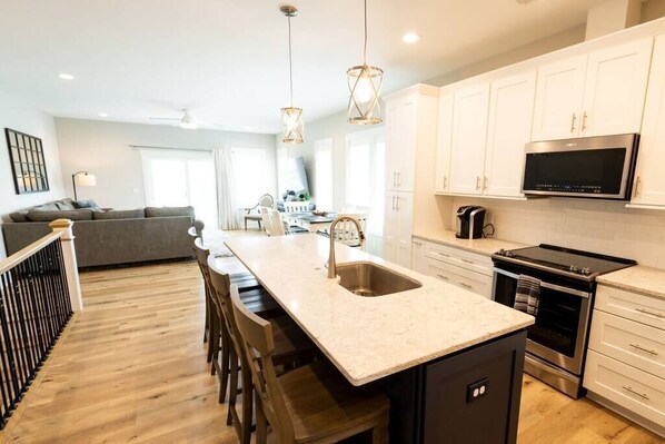 Three Seas at the Beach is a brand new 4 bedroom, 4 bathroom townhouse built in 2020 with custom finishes throughout. This property is an easy 4 minute walk to the beach. Pride of ownership throughout this home, and we hope you feel welcome when you stay! Enjoy the reverse floorplan with the kitchen and living room on the top level! Several private patios to enjoy the fresh ocean breeze! Close to everything, and you'll love the proximity to the beach!
