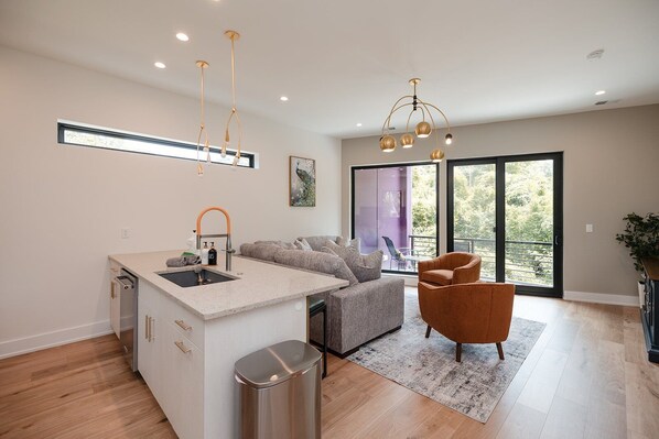 Spacious open-concept living area with curated décor, luxury furnishings, and natural light throughout.