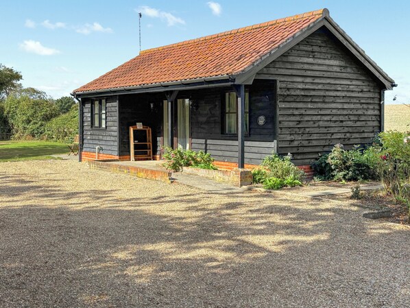Shower Room: Cubicle Shower, Heated Towel Rail, Toilet. Electric heating, electricity, bed linen, towels and Wi-Fi included. Travel cot and highchair. External utility room with washing machine and tumble dryer. Back garden with, sitting out area, garden furniture and barbecue . Private parking for 2 cars. No smoking.. Escape to the heart of rural Suffolk and enjoy a relaxing break in this delightful lodge in Saxtead Bottom, a peaceful hamlet just minutes from the historic market town of Framlingham. Perfect for couples or small families looking for a tranquil countryside getaway. Step inside to find a warm, welcoming interior, the cosy living room has a Smart TV and sofa bed, the patio doors open onto a private garden area, perfect for morning coffee, al fresco dining, or simply soaking up the peace and quiet. The well-equipped kitchen/diner has an oven, hob, microwave and fridge . The bedroom has a double bed and ample storage and there is a shower room. Outside there is a shared laundry room with washing machine and tumble dryer and guests have use of a BBQ. A small patio with garden furniture surrounded by garden (not securely fenced), a gradual slope to the door allows easy access to the property. There is a lovely walk down a track behind the chalet that leads to the lake area, where you can fish or just enjoy the wildlife.